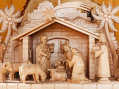 Juy malt den lebensgroßen Josef wie einen Hirten an, obwohl dieser ja von Beruf Zimmermann war. „Ich male ihn so wie einen Hirten an, denn Jesus ist ja in einer Krippe geboren und das war in einem Stall mit Esel und Schafen.“